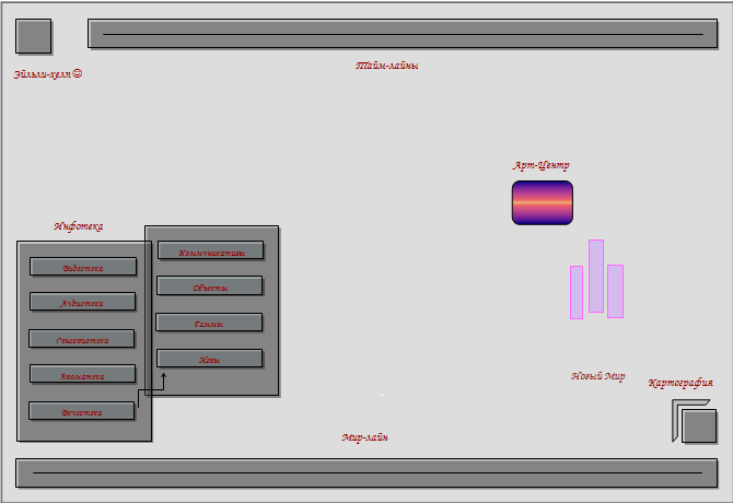 Активируется экран «Включением» - усилием мысли. Все элементы динамично прозрачны (активация-проявление направлением внимания). Это одна из несложных (стартовых) моделей – собрано всё самое необходимое на данный момент, в данных обстоятельственных условиях. Изначально, заметим, на экране вообще присутствовала только кнопка Эйльли-хелпа!.. :))) С неё начинался разворот всего дальнейшего ИИ-использования и ей же заканчивался. Сейчас задействованны несколько более продвинутые элементы. Тайм-лайны предоставляют возможность виртуальных путешествий по различным временным шкалам (личная, социальная, мировая и т.п.). Уголок-кнопка картографии активирует в центре экрана разномасштабные карты различных пространств. Мир-лайн (хватает пока одного) даёт возможность первичного ориентирования на Шкале_Миров. В арт-центре с отдельно выделенным курсом Нового Мира ведутся дежурные творческие разработки. Ну и панели инфотеки предоставляют неограниченный доступ к пяти основным коммуникационным сенситивам человеческого существования – видео-, аудио-, сенсио-, арома- и вкусоматериалам. Деактивация/«Отключение»: в рабочем порядке (по окончании использования Инфоинсайдера), либо в режиме «Автососкальзывание» (удобно при оперативном использовании ИИ, например на улице, отвлечение на внешние более актуальные обстоятельства ведёт к автоматическому отключению). Инфоинсайдер является уникальным инструментом игр с окружением - миросозидания, мировосприятия и мироуправления. Инфоинсайдер способен развиться в любой сложности информационную структуру – «внутренний компьютер» и «внутренний визуализатор/реализатор», «внутренний помощник» и «внутренние сенситивы (чувства)», во «внутреннюю Центрально-Энергетическую Систему (ЦЭС)» и во «Внутренний генератор пространственно-временных и иных информационно-энергетических форм и миров»… Инфоинсайдер может обладать любой степенью прозрачности_самоосознания. То есть играть как в фоново-скрытых режимах полнейшей своей незаметности, так и в режимах различной выраженности представлений, визуализаций, непосредственных реализаций и т.п. |