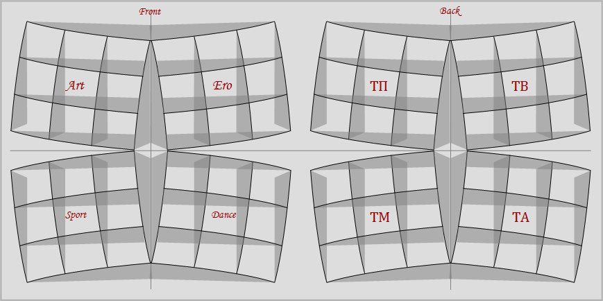 Art – художественный tc Ero – эротический tc Sport – спортивный tc Dance – хореографический tc ТП – Travel_П (tc путешествий в пространстве) ТВ – Travel_В (tc путешествий во времени) ТМ – Travel_М (tc путешествий в мироздании) ТА – Travel_А (tc альтернативных форм путешествий)